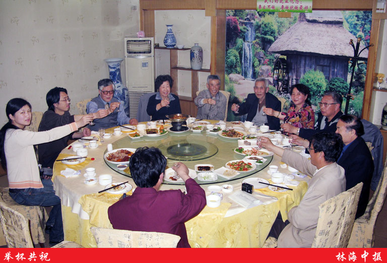 从穿白上衣女孩起按顺时针排序:张欲仁孙女张斌,李静波,赵友三,陈秀菊,萧立功,张欲仁,张欲仁女儿张索亚,刘凤麟