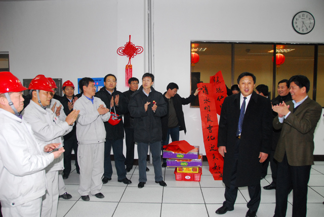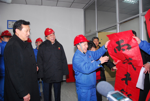 市长张晓霈(右二)以送春联的形式慰问在岗人员