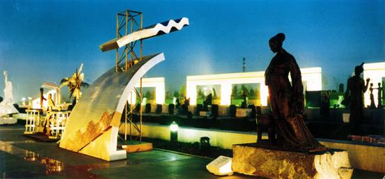 自然地形起伏变化与其天然的碧水,是难得的雕塑公园环境。规划采用中国传统与西方造同学说和现代规划理念相结台的构思,达到了自然与人文的和偕统一。主入口大门及两侧弧形引导墙,沿中轴线对称布局相得益彰;不对称的景观广场,运用巧妙的轴线转折,通过拱平桥与主题雕塑遥相呼应。蜿蜒变化的一、一号园路,似玉带沿碧波粼粼的湖水环绕,与四组景观长墙巨龙般倾向湖心的喷水,形成动与静、直与美的韵律美。园中的主题建筑,是目前国内最大的雕塑艺术馆,其没计构思新颖,优美的曲线与直线相结合的造型本身就是一尊巨大的现代雕塑艺术品。馆内藏有世界上最神奇的非洲马孔德市雕数百件,还有已经收藏或正在收藏的中外著名雕塑家的大批精品雕塑,会让参观者留连忘返。