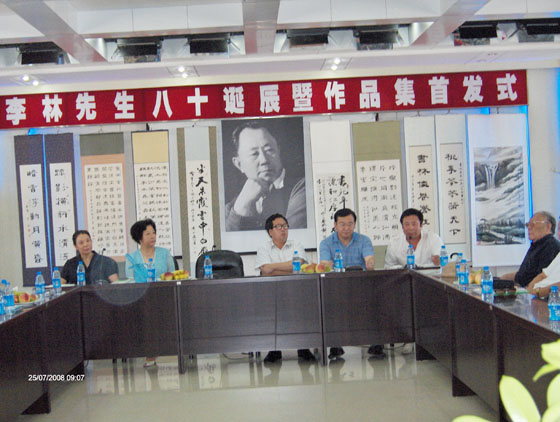 专程从长春赶来的省书协理事吴玉珩讲话,深情回忆与李林先生共同工作亦师亦友的情谊。我市著名书法家窦黎明、张运成、叶天废、杨延文,美术家宋辛程,文史学者康意春、马为良、傅丹风等先后讲话,我市著名摄影家朱乃华回忆和李林先生朝夕相处结下的深厚友谊,并宣读远在北京出差的高绍盛先生用手机发来的短信:“欣闻李林老先生书法集出版曁诞辰八十周年,非常高兴,因出差不能参会,深表歉意,特作七绝一首以示祝贺。欢聚一堂忆故人,温文尓雅属李林。书品精粹如人品,浪木开发当谢君。”