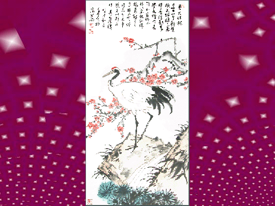 吾友伴梅居士,一生钟爱梅花,伴梅而居,暗香浮动,享誉书坛,今喜闻书展将办,特以宋林和靖梅妻鹤子之意作画以赠.