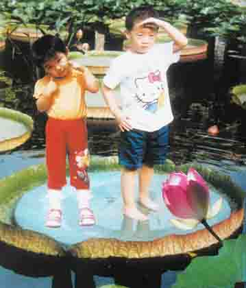楹联:兄妹池中留倩影;叶花水上展娇容。