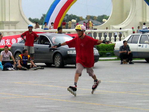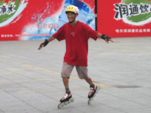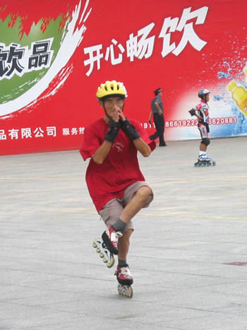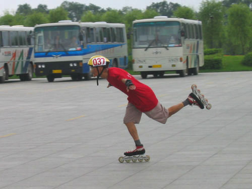 比赛期间,徐大爷从来都是穿着轮滑鞋在场地走动,似乎有用不完的精力,擦肩而过时若不留神甚至会以为是年轻的溜溜一族。一起来看看徐大爷的花式动作,感受一下这位活力老人的旺盛精力吧!(特派记者LILY哈尔滨摄影报道) |