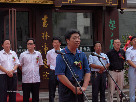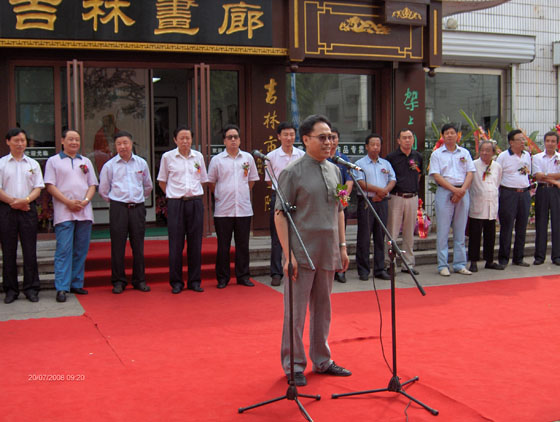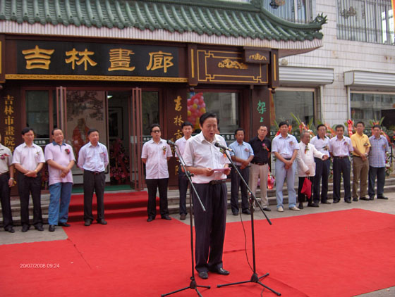 本站讯 (通讯员 孟奇)7月20日我国著名美术家袁武画展在北国江城吉林市画院展厅开幕。 袁武是从吉林走向全国的美术家。他1959年9月生于吉林省吉林市,1984年毕业于东北师范大学艺术系,1995年毕业于中央美术学院国画系,获硕士学位。现任解放军艺术学院美术系副主任、教授,中国美术家协会理事,全国青联委员,北京美术家协会理事。他的作品多次获得全国美展大奖,多次在海内外举办个人画展。 他的作品,大气、大度、大格调、大风骨、大气派。以其强烈的风格、特质,展示了非凡的才能。他的长线条、大墨块,“强化说”等等,都从不同层面、不同角度丰富着当代人物画创作的物理空间,也铺垫着迈向更高境界的艺术路途。让观众大开眼界。 这是他首次回故乡举办画展,省委宣传部、省文联、市委、市政府、市人大、市文化局、市文联领导和书画爱好者一千余人参加开幕式。